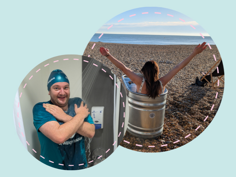 Once you have started fundraising and raised your first £24, we'll send you a T-shirt, and then once you have raised £60 we'll send you a woolly hat to help keep your head warm when you're doing your cold water dips.