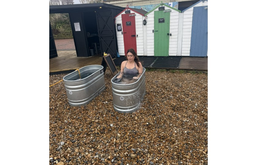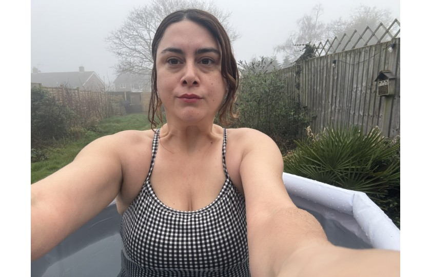Day 9 - Beth's first dip in the cold plunge tub